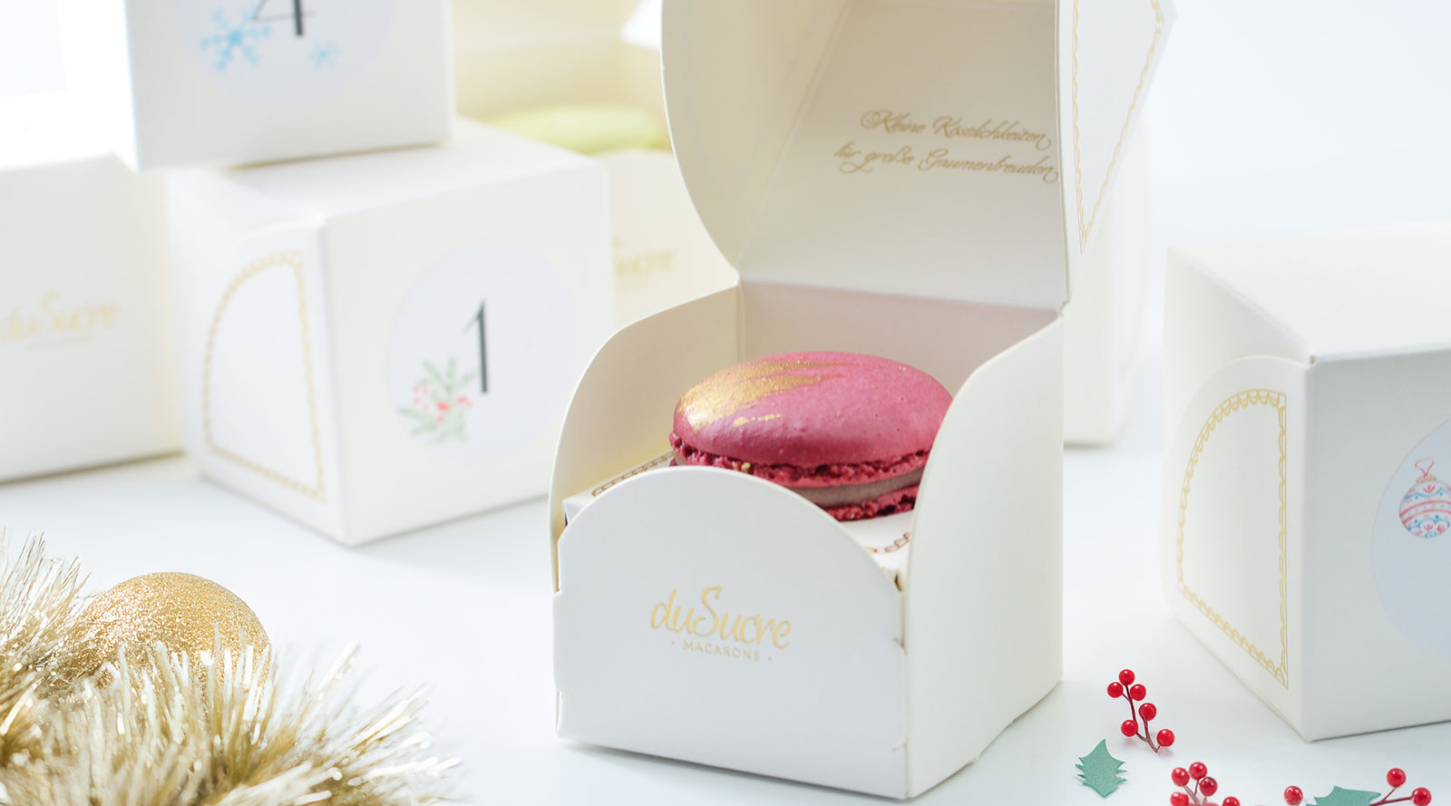 duSucre Macarons eignen sich auch hervorragend als edles Werbegeschenk mit personalisiertem Firmenbranding samt Logo und Werbebotschaft. Ob für Partner, für das eigene Team oder auf Events.