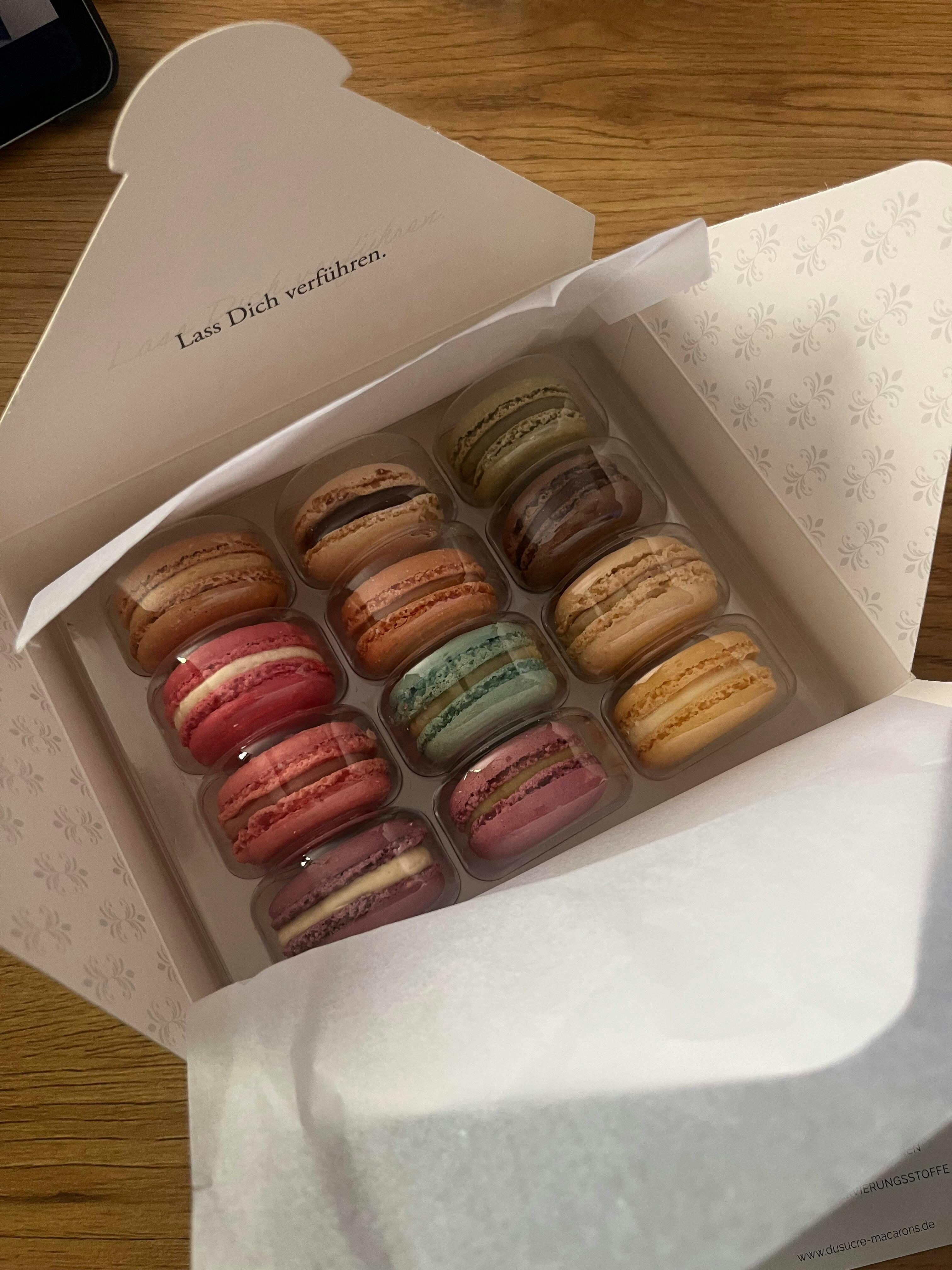 Ich bestelle immer wieder gern bei DuSucre. Dort schmecken die Macarons einfach am Besten. Sie kommen liebevoll und gut verpackt an. Ich weiß es außerdem sehr zu schätzen, dass ich mir meine Sorten selbst aussuchen und zusammenstellen kann. Bei den meisten Macaron-Anbietern stehen ja nur feste Sortimente zur Auswahl, bei denen ich dann mindestens eine Sorte nicht mag. Dies ist das Mehr an Service und Kundenfreundlichkeit, was mich immer wieder auf DuSucre zurückkommen lässt.