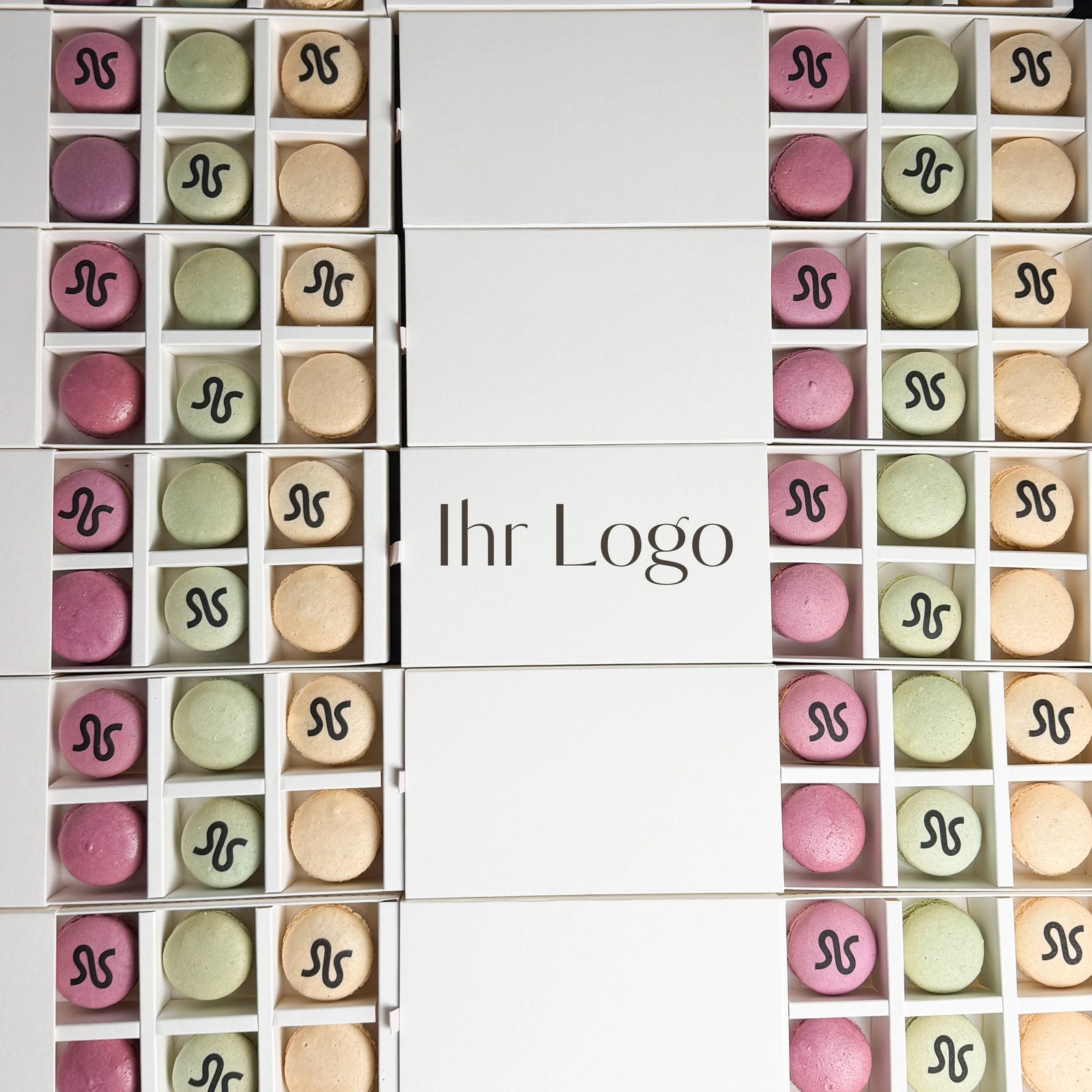 Unsere Macarons sind nicht nur köstlich, sondern auch ein elegantes Aushängeschild für Ihr Unternehmen. Gestalten Sie Macarons mit Ihrem Logo, Schriftzug oder Motiv und heben Sie sich stilvoll von der Masse ab. Ob für Konferenzen, Messen oder Firmenevents – mit personalisierten Macarons zeigen Sie Geschmack und Qualität.