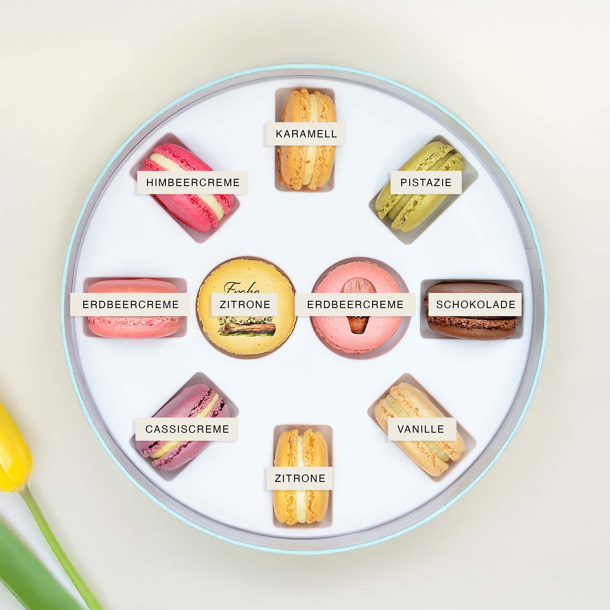 Unsere Macarons bleiben nach Ankunft etwa 7 Tage frisch – vorausgesetzt, sie dürfen im Kühlschrank wohnen. Danach sind sie meist noch genießbar, aber ganz ehrlich: Kaum jemand schafft es, sie so lange unangetastet zu lassen.