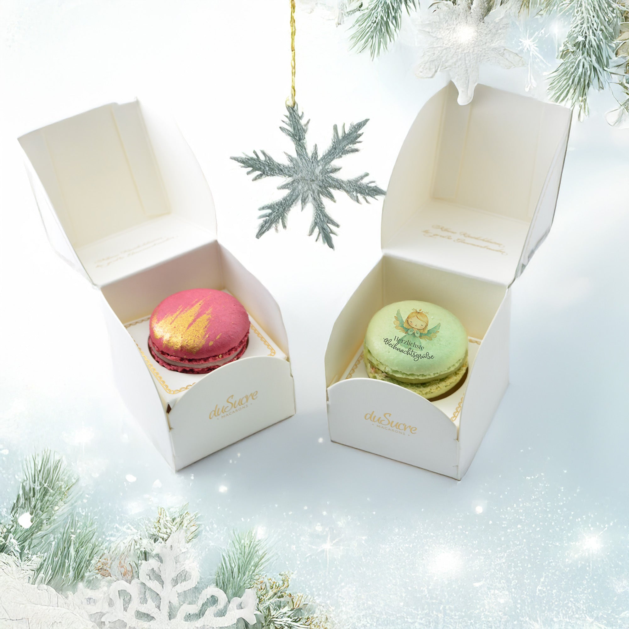Viermal im Advent erhältst Du eine frische Lieferung von sechs erlesenen Macarons, liebevoll von Hand gefertigt und einzeln verpackt wie kleine Schmuckstücke. Jede Box ist eine feine Komposition aus klassischen Lieblingssorten, winterlichen Saisonkreationen und exklusiven Editionen, die nur für diesen Kalender entstehen.